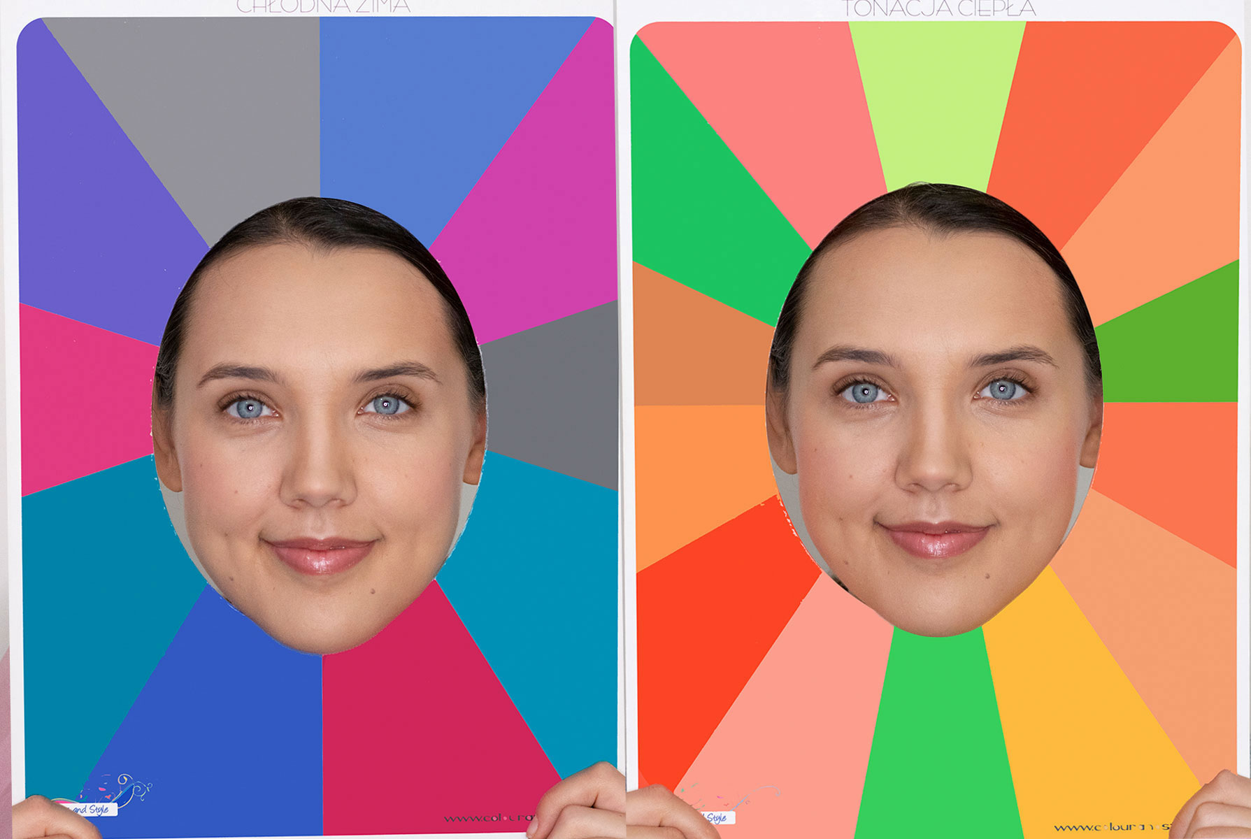 Chłodna Zima w palecie zimnej (z lewej) i w bardzo ciepłej gamie (po prawej)