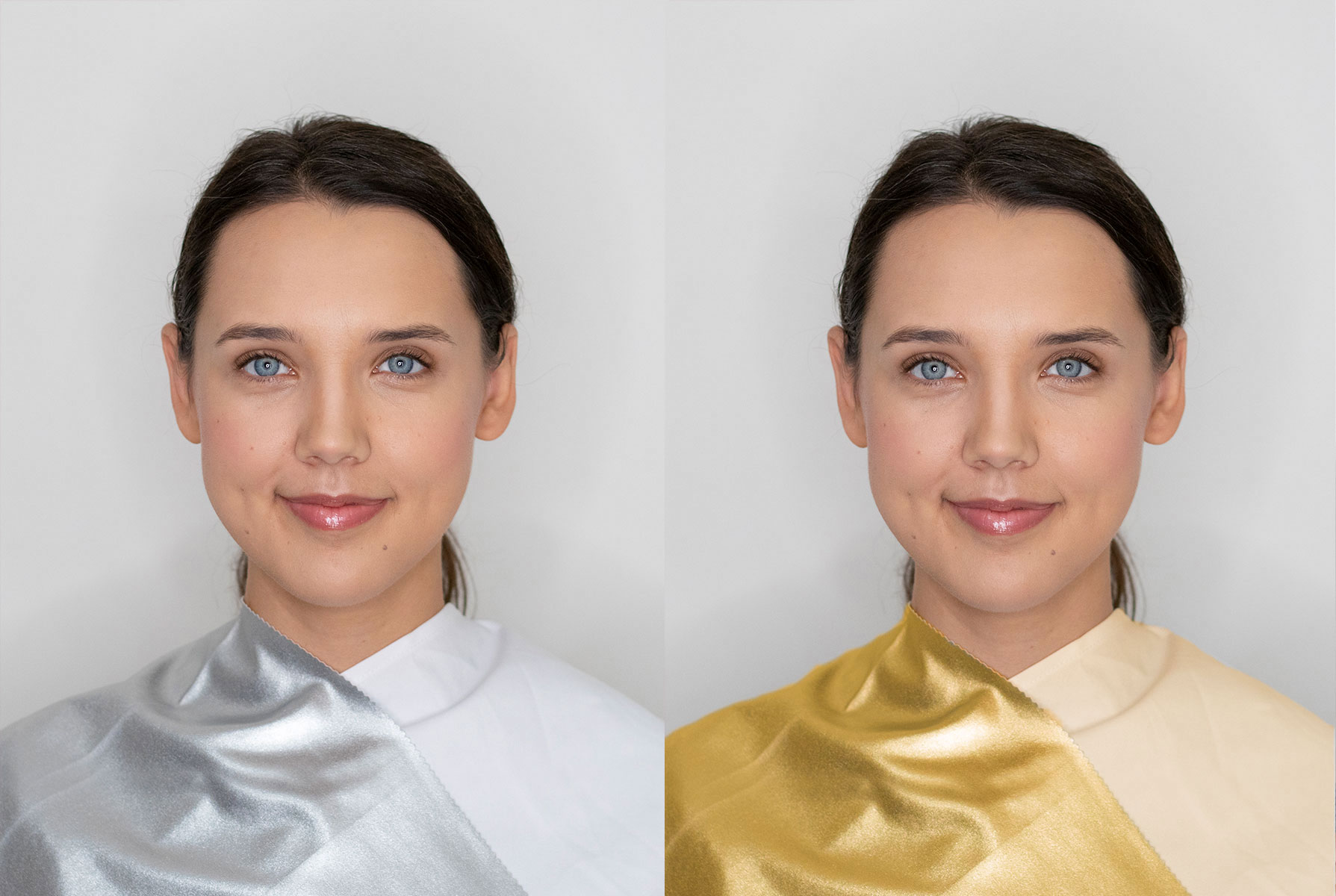 Żeby dostrzec w pełni, czy barwa nam pasuje (harmonizuje z temperaturą, stopniem nasycenia i zaciemnienia naturalnych pigmentów), należy porównać ze sobą wiele odcieni, gdyż dopiero wtedy jesteśmy w stanie najpierw wyeliminować najbardziej niepasujące, a następnie „wydestylować” z całej gamy barw te najkorzystniejsze.